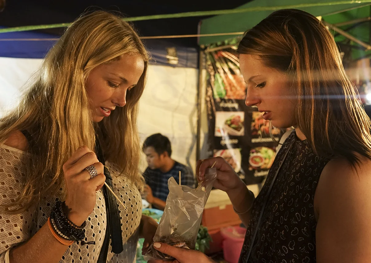 The next day I’m raving about the market to Thor and he insists I take him that evening. As we sit around the hostel patio, what starts out as a small group of us going to the night market, turns into about nine or ten. Among others joining us is a fellow American, Madalyn, who is studying in Italy, and Nadija, from Germany.